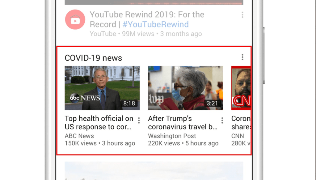 YouTube has had its fair share of issues with promoting unsavory videos and conspiracy theories on its home page during past breaking news situations, and the news shelf may offer a way for the company to keep a stronger editorial hand on videos touching on the pandemic.