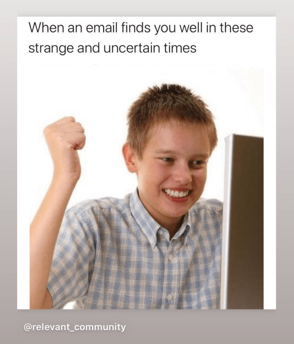 The internet’s response to COVID-19 has been an international outpour of gallow’s humor. From group chats to Instagram joke accounts to Reddit threads to Facebook groups like quarter-million member “Zoom Memes For Quaranteens”, we’re joining up to weather the crisis.