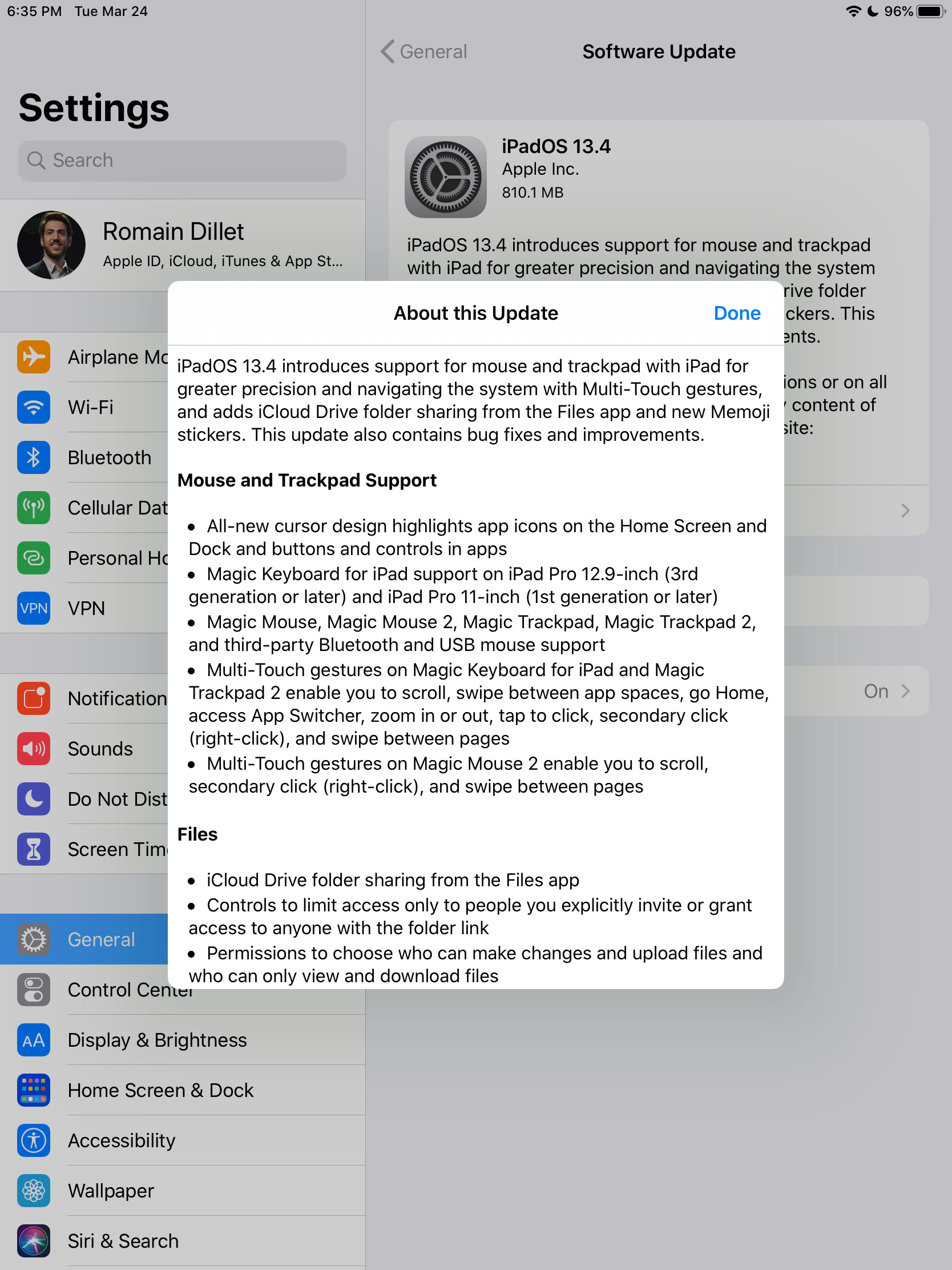 In addition to trackpad support, iOS and iPadOS 13.4 add a handful of features. You can share an iCloud Drive folder with another iCloud user — it works pretty much like a shared Dropbox folder.