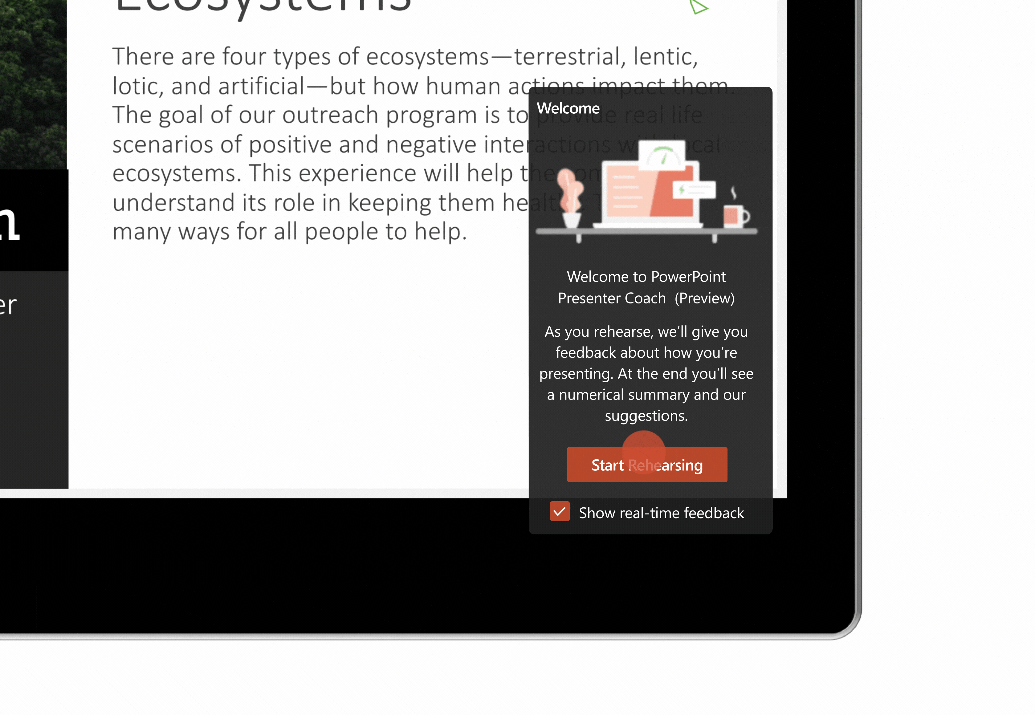 This feature first launched in the online version of PowerPoint, with a basic set of features. Now, Microsoft 365 subscribers will get two new advanced features, too, that can help you avoid a monotone pitch that puts your audience to sleep and avoid grammar mistakes in your spoken sentences.