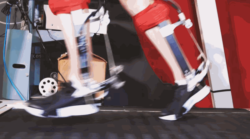 Running is a full-body exercise to be sure, but your calves are doing a lot of the work lifting your body. Another project out of Stanford aims to power up the spring-like motion of a runner’s leg. The setup looks a bit jury-rigged — ropes tied to pegs — but the results are apparently quite delightful.