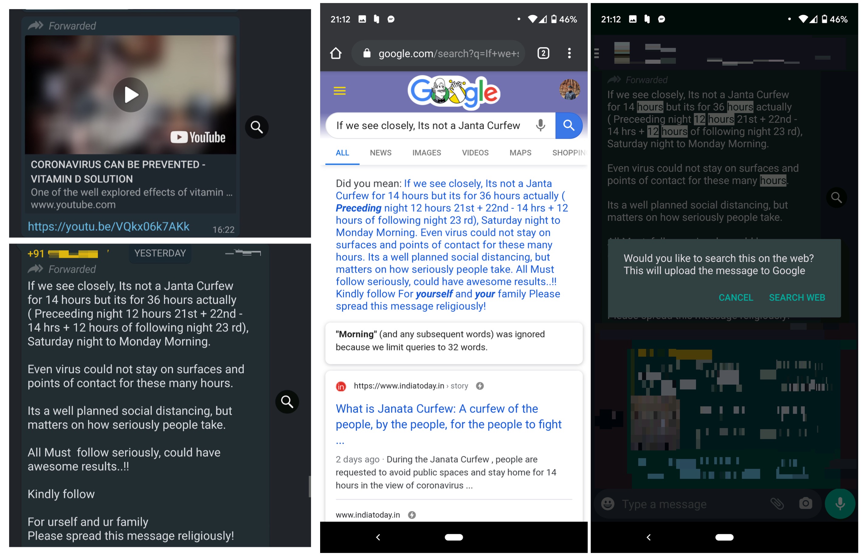 WhatsApp has also been testing a feature on the beta version of its Android app that gives users the ability to quickly comb through the web with the text or video they have received for more context.