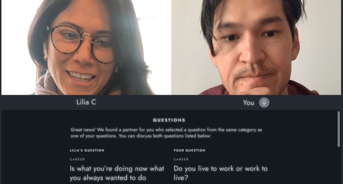Participants choose from a library of more than 250 “deep” questions, then get matched with partners who want to explore the same topics. They then RSVP for twine’s digital gatherings in their time zone and check in when it’s time to start.