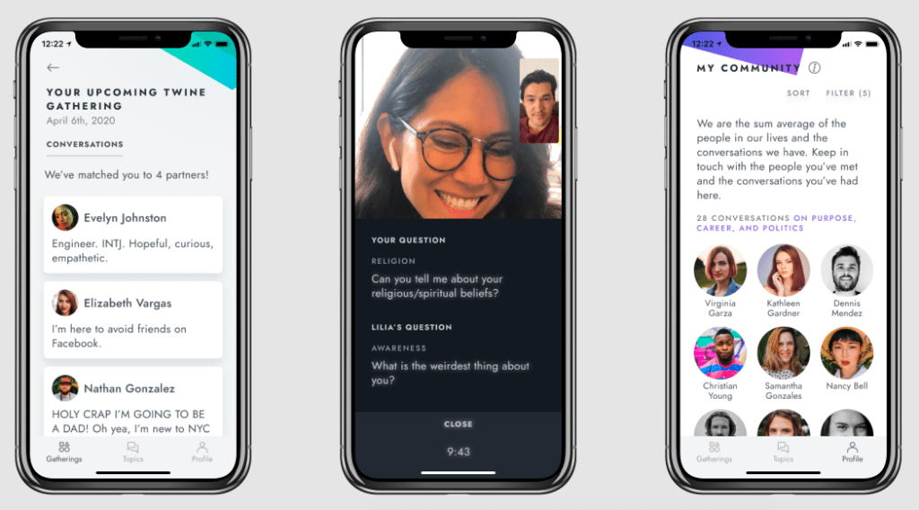 A new startup called twine wants to help people feel less isolated and alone. Though the project has been in the works for around six months, it’s launching at a time when people are struggling with being cut off from family, friends, neighbors, co-workers and others due to the COVID-19 outbreak and the resulting government lockdowns and self-quarantines. Described simply as a “Zoom for meeting new people,” twine is a group video chat experience where people are encouraged to have meaningful discussions that spark new friendships.
