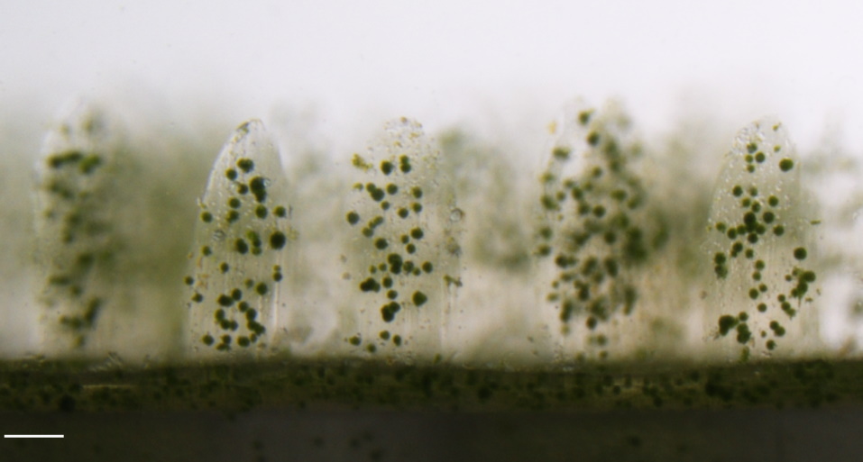 The team at Cambridge realized that to successfully imitate the coral micro-ecosystem, they’d need to replicate that special quality of capturing sunlight and diffusing it within for use by resident algae. To do so, they studied the structure of corals closely and worked to remake it at a microscopic level. But instead of using an ordinary durable substrate, they created a sort of living gel.