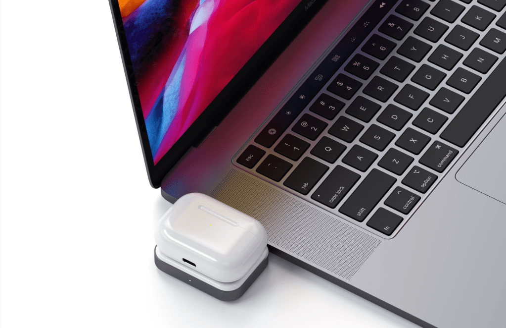 The dock serves as a wireless charger and cradle, probably best used when your laptop is sitting on a desk rather than your actual lap. The product’s width also looks as though it will monopolize both ports on one side of your MacBook.