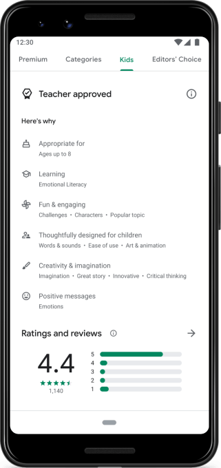 Google says it heard from parents that it was difficult to find kid-friendly apps they felt good about letting their children use, which is why it chose to launch the new “Teacher Approved” section on Google Play.