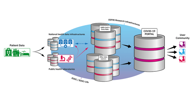The data portal is one of two connected pieces of what’s intended as a wider European COVID-19 Data Platform — illustrated in the below diagram — the other being SARS-CoV-2 Data Hubs, which will “organise the flow of SARS-CoV-2 outbreak sequence data and provide comprehensive open data sharing for the European and global research communities,” fed by inputs from national health data infrastructures and public health labs.