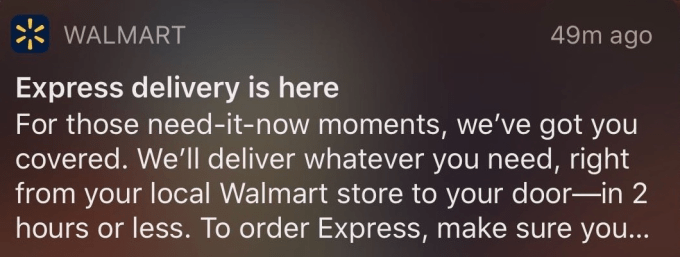 Though Walmart is officially promoting Express as a “two-hour” delivery service, in the weeks it’s been piloting the program Walmart has been able to deliver these orders within 56 minutes, on average.