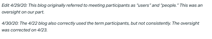 “We updated the blog with a footnote and we have updated inaccuracies in the past as we did in the April 1 blog, but for this one in particular it was an oversight which we now have corrected,” a company spokesperson told TechCrunch.