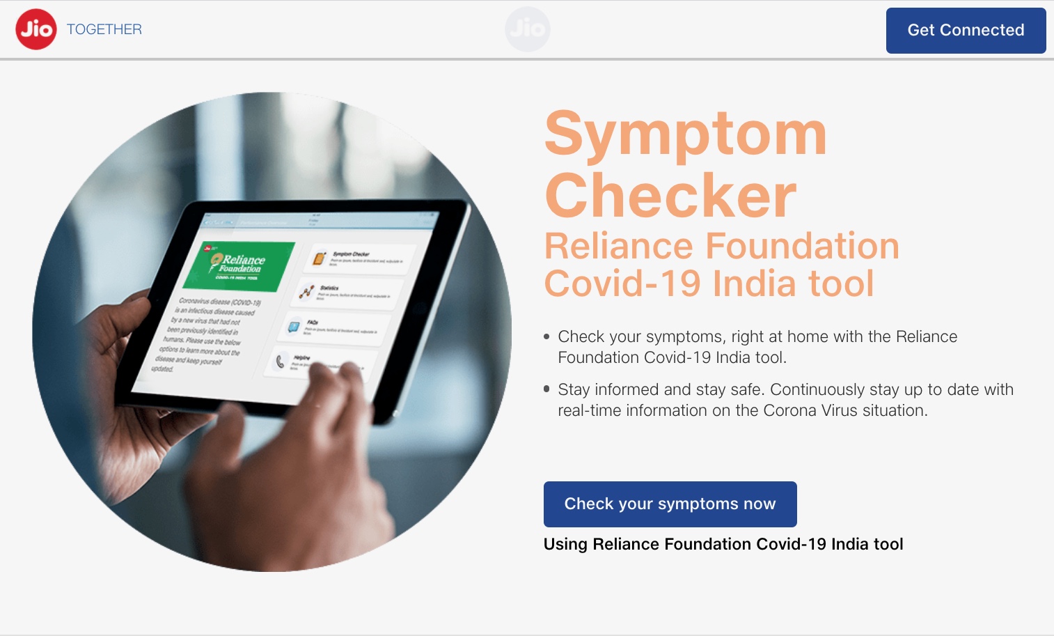 India’s largest cell network Jio, a subsidiary of Reliance, launched its coronavirus self-test symptom checker in late March, just before the Indian government imposed a strict nationwide lockdown to prevent the further spread of the coronavirus. The symptom checker allows anyone to check their symptoms from their phone or Jio’s website to see if they may have become infected with COVID-19.