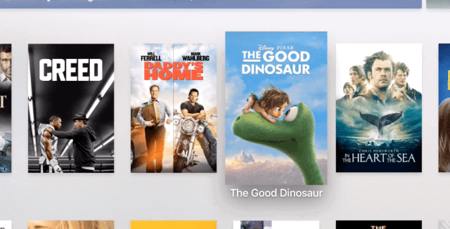 Once on the icon, the cursor moves the icon in a small parallax, but this icon shift is simulated — there are not layers here like on Apple TV, but they would be fun to have.