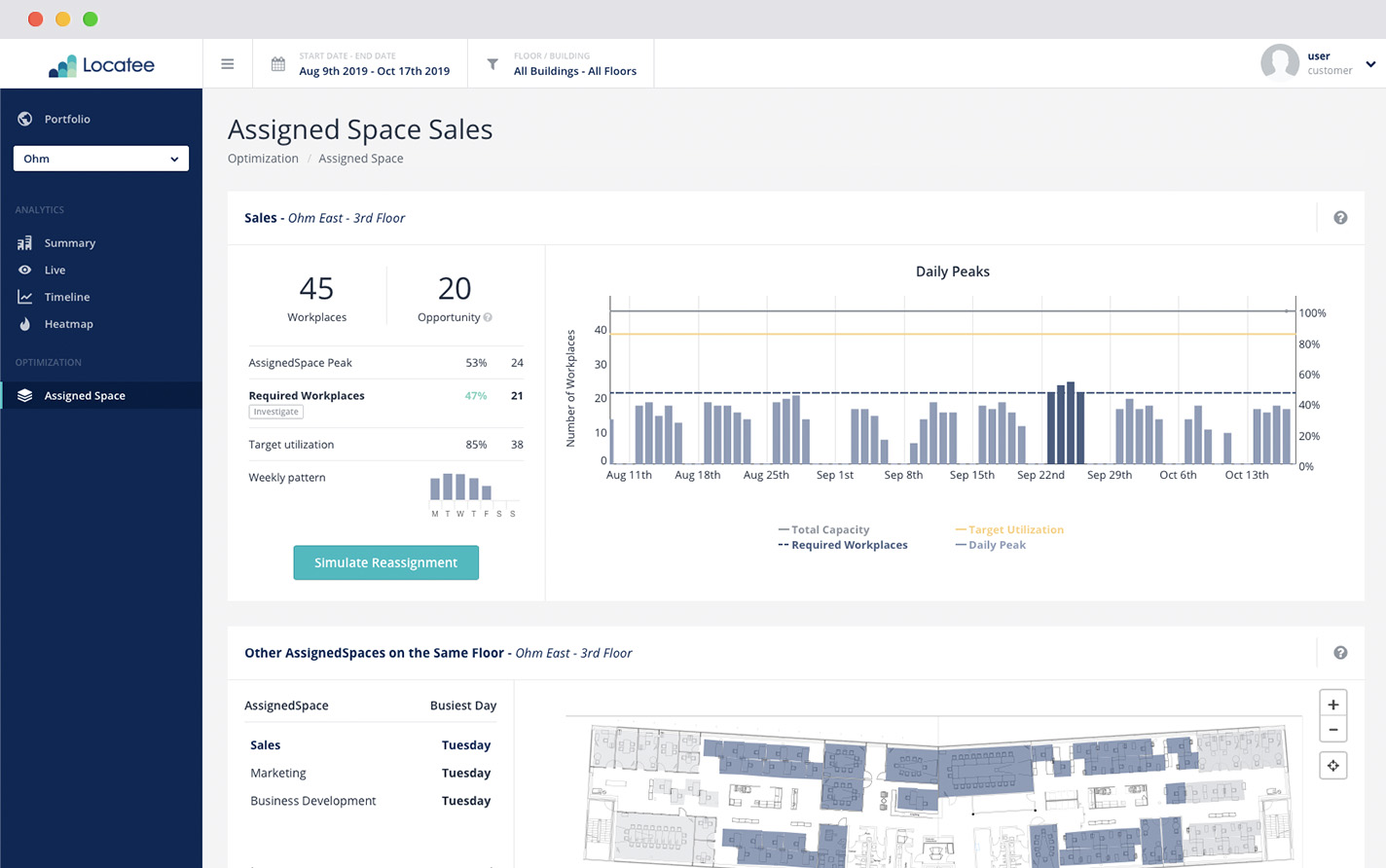What makes Locatee stand out from similar players in this space is that it integrates with existing motion sensors inside a building and other data sources, like Wi-Fi networks. For Swiss Re’s Munich office, for example, Locatee was able to work with NetCloud and integrate with the existing Cisco network infrastructure. Thanks to the data it gathered, Swiss Re was able to reduce its local office space by 10%, which Locatee says allowed the company to save about €290,000 per year.