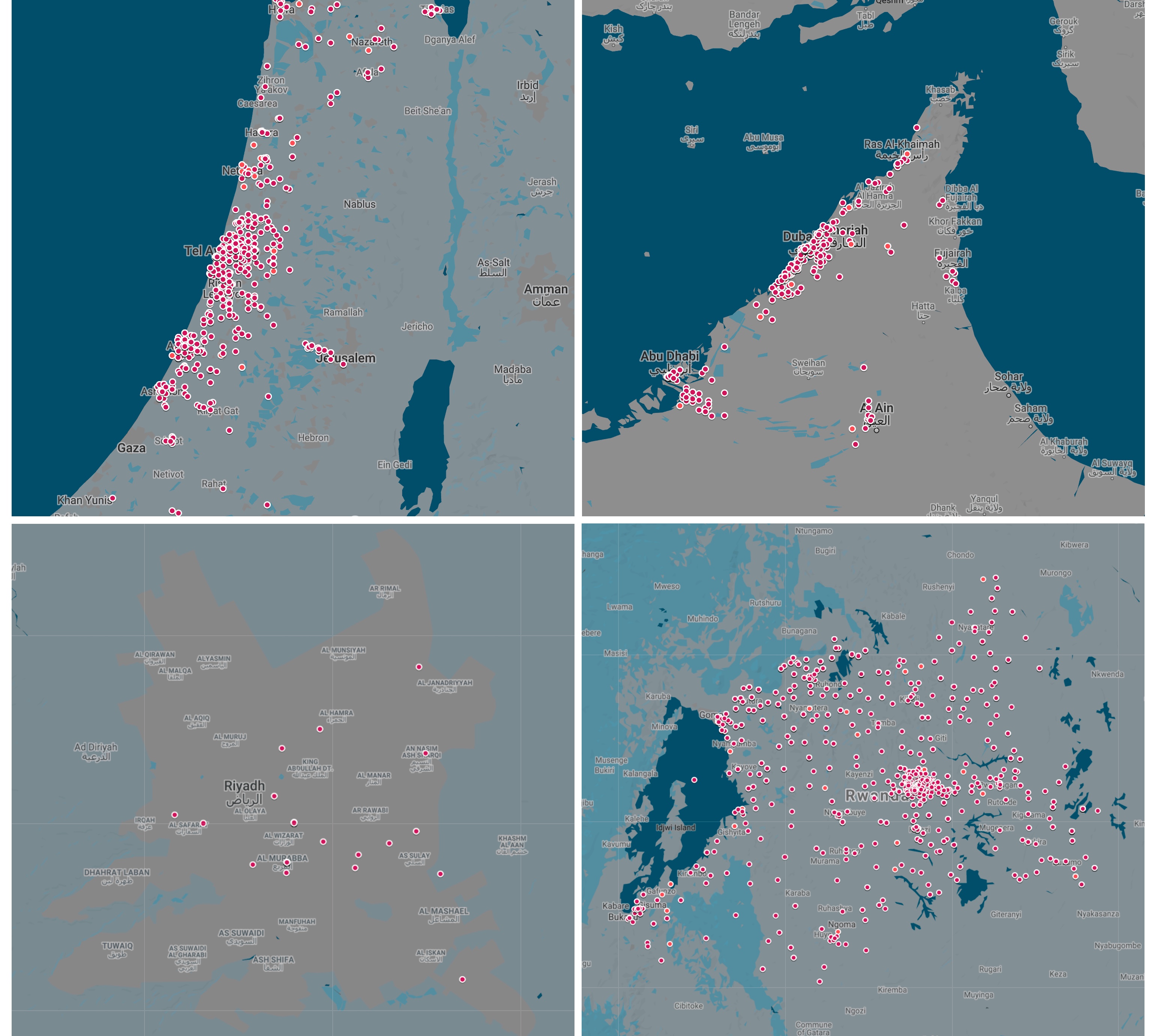 A review of the unprotected database showed large amounts of location data points in Israel, but also Rwanda, Saudi Arabia and the United Arab Emirates.