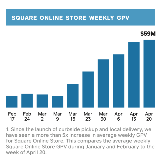 The shifts to online from in-person selling led to Square Online Store seeing its weekly GPV up more than 5x and the number of sign-ups grow since March. Square Capital added a 24-month loan product as part of Square’s participation in the PPP.