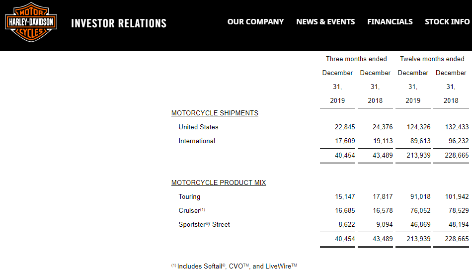 As a publicly traded company, I was hoping Harley would offer EV data in its end of year and first-quarter 2020 financials.