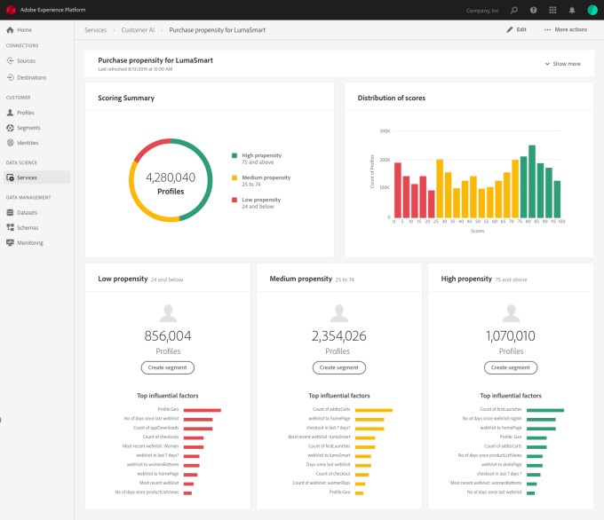 What’s more, we’ve known for some time that when there is so much data, it becomes impossible to make sense of it manually. Given that AI deals best with tons of data, Adobe wanted to take advantage of that, while packaging some popular data scenarios in a way that makes it easy for marketers to get insights.