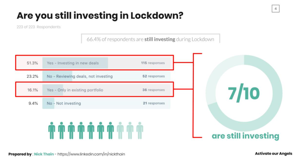 ● 66.7% of Angel investors are still investing during Lockdown