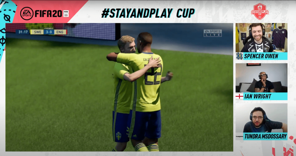 These reality-show tactics make broadcasts more entertaining and emotionally compelling to broader audiences; people who aren’t hardcore gamers don’t care as much about seeing the highest caliber of esports competition. Sitrin said EA purposely pairs famous commentators like retired Arsenal player Ian Wright with an experienced esports broadcaster as co-hosts and are experimenting with more strategies to foster excitement when all participants are video-conferencing in. Esports broadcasts are being redesigned as their own format of entertainment that is not constrained by the best practices of sports broadcasting.