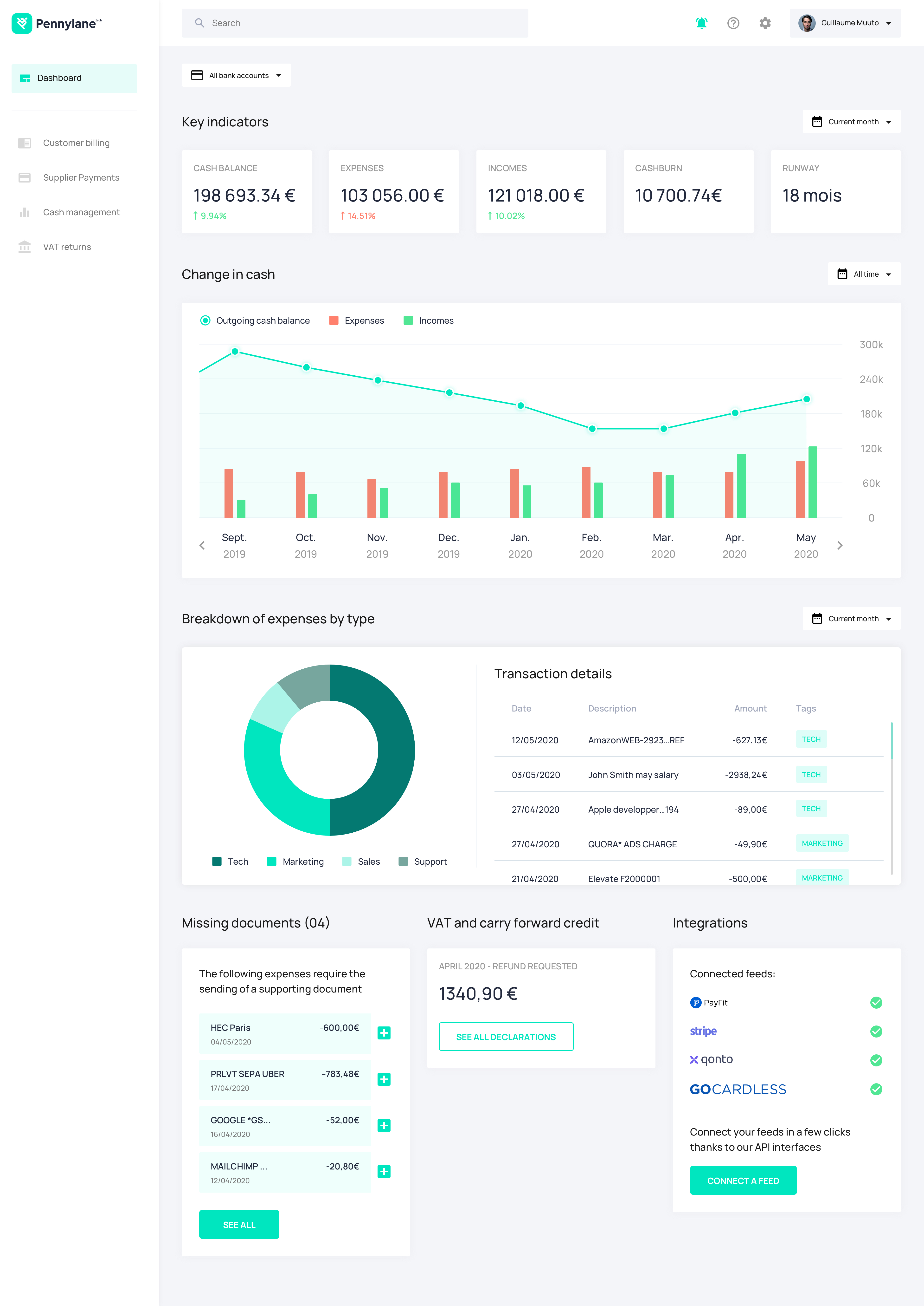 Meet Pennylane, a new French startup that is a building a full-stack service to deal with your financial data. With Pennylane, you get a real-time view of your financial data and you don’t have to work with an accounting company — the startup hires accountants for you.