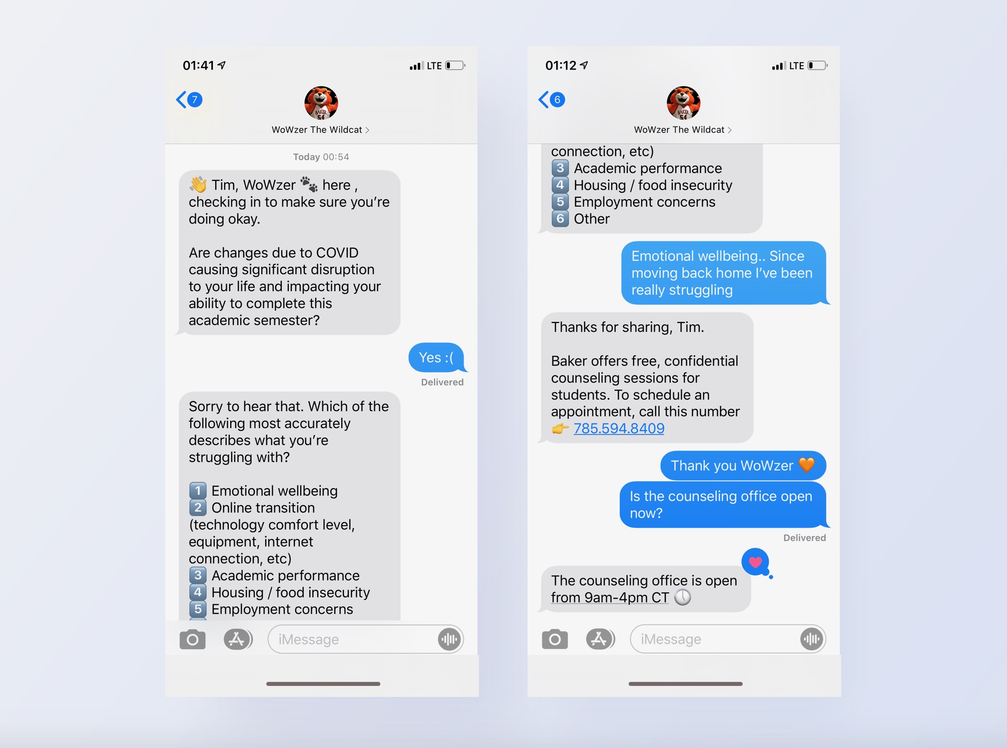 EdSights uses a chatbot, branded under a school’s mascot, to send personalized questions and messages to students to understand their biggest stresses. It then connects them to university resources spanning areas like financial aid, food security and mental health.