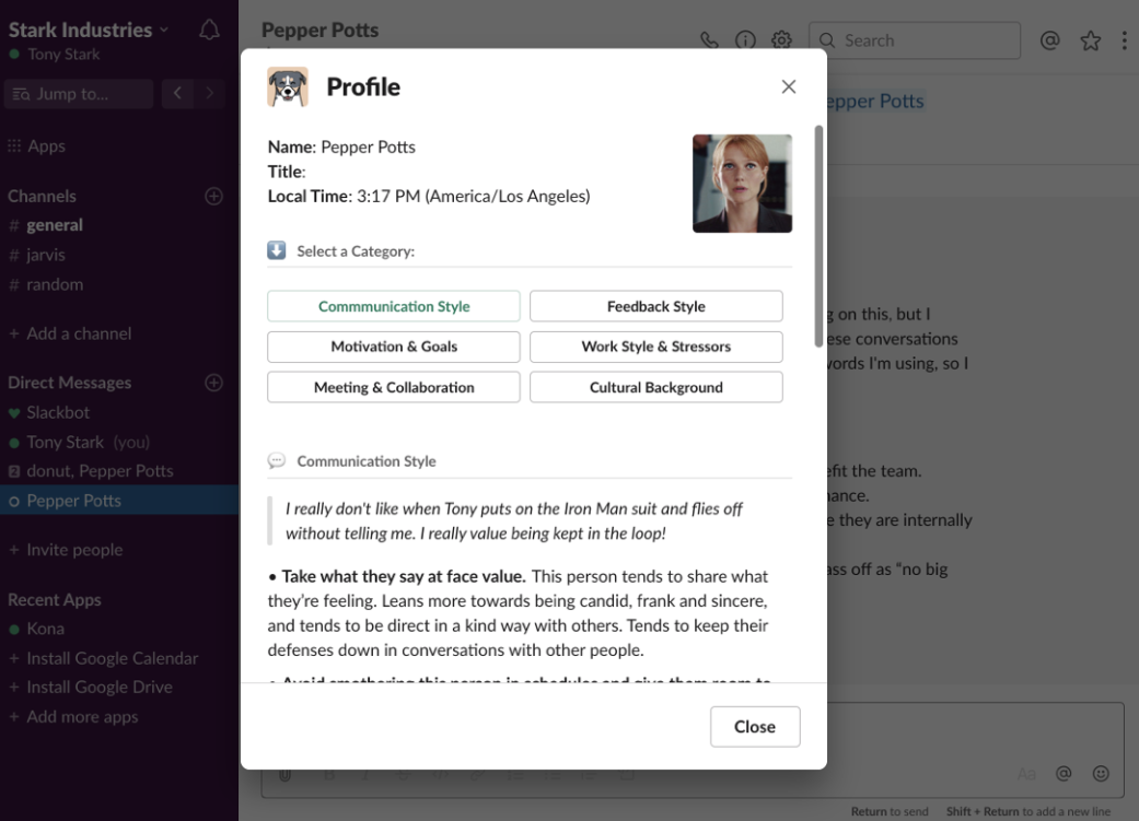 I’m actually an advisor for a company called Sike Insights. They’re developing this Slack tool called Kona. It’s this amazing tool where anyone who joins a remote organization… you essentially go through this Q&A about: who are you?