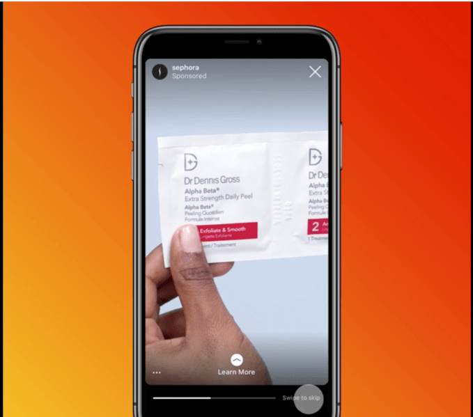 This is also considered a test, as Instagram is looking to see how ad placements like this should work — after all, interrupting the experience at the exact point the user has been encouraged to click to see more could end up hurting video views. The company says it will also test the ability to skip ads, to ensure the product works well for viewers, creators and advertisers alike.