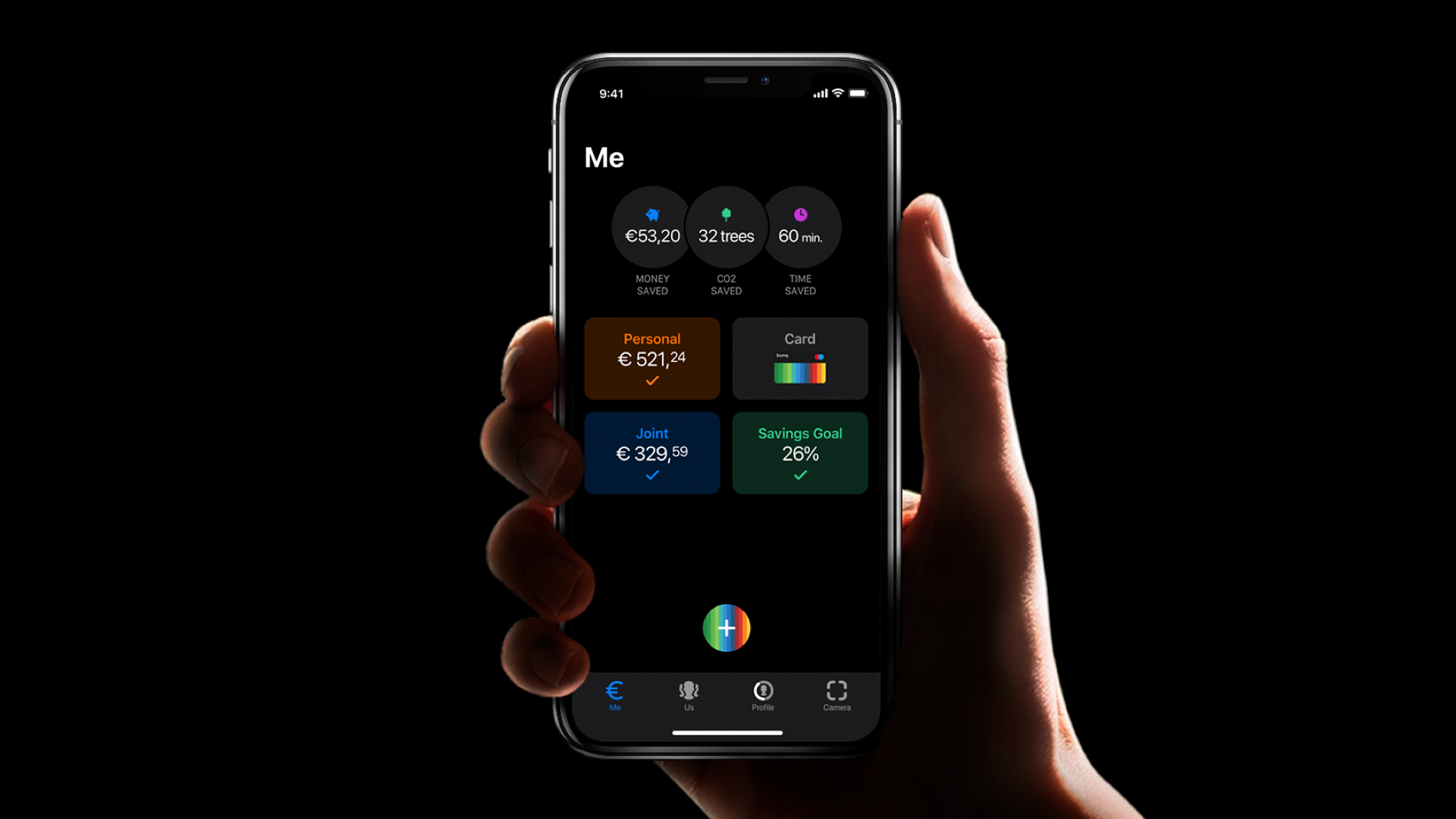 The first tab, called “Me,” will feature all your personal information — personal bank accounts, savings goals, etc. On the second tab, called “Us,” you can see information about Bunq, such as total investments and total donations. The third tab features your profile information.