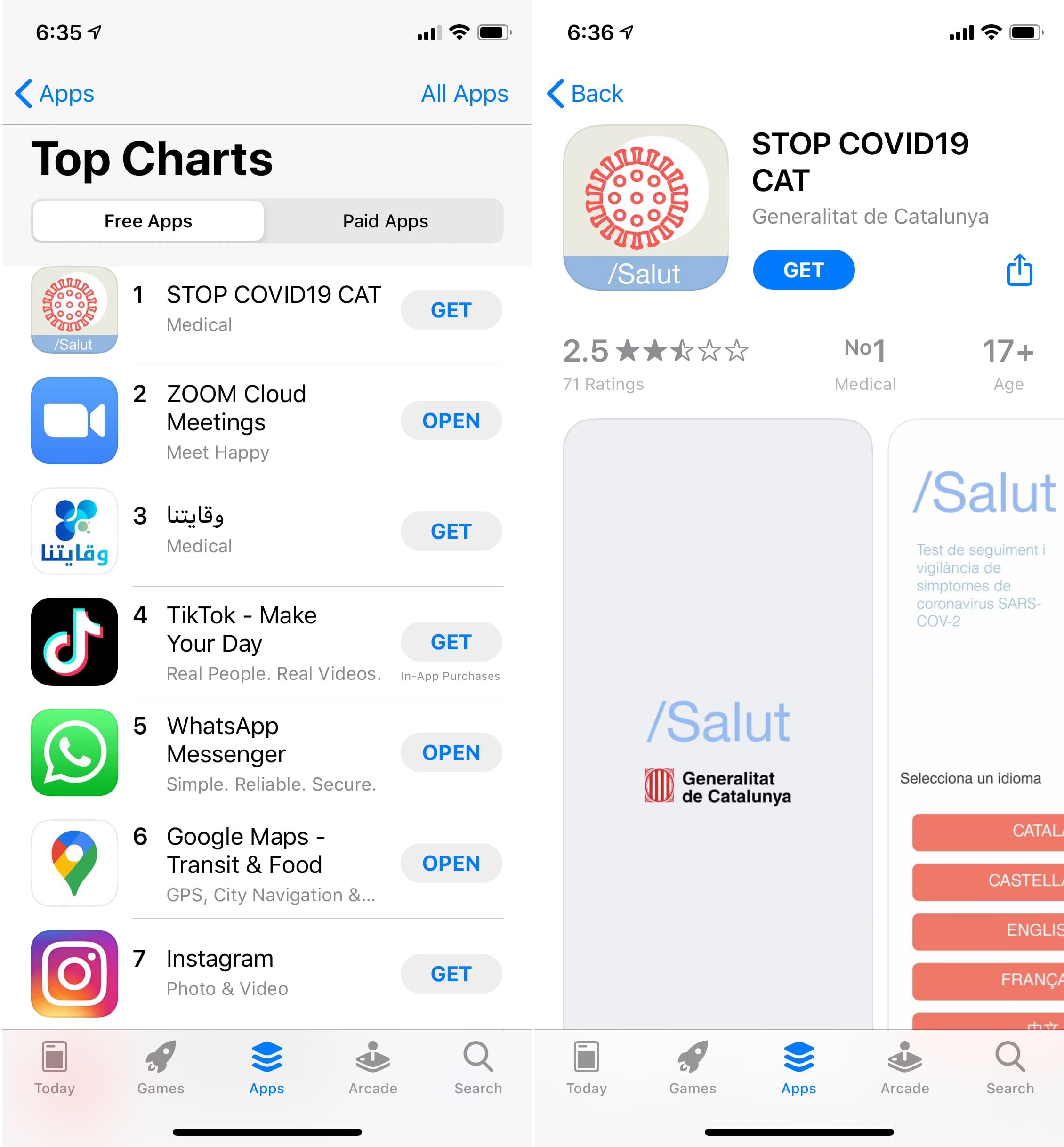 There’s one thing for sure — not releasing the iOS app at the same time as the Android app introduces some confusion. The most downloaded app on the iOS App Store in France is currently STOP COVID19 CAT, a health information app from the government of Catalonia: