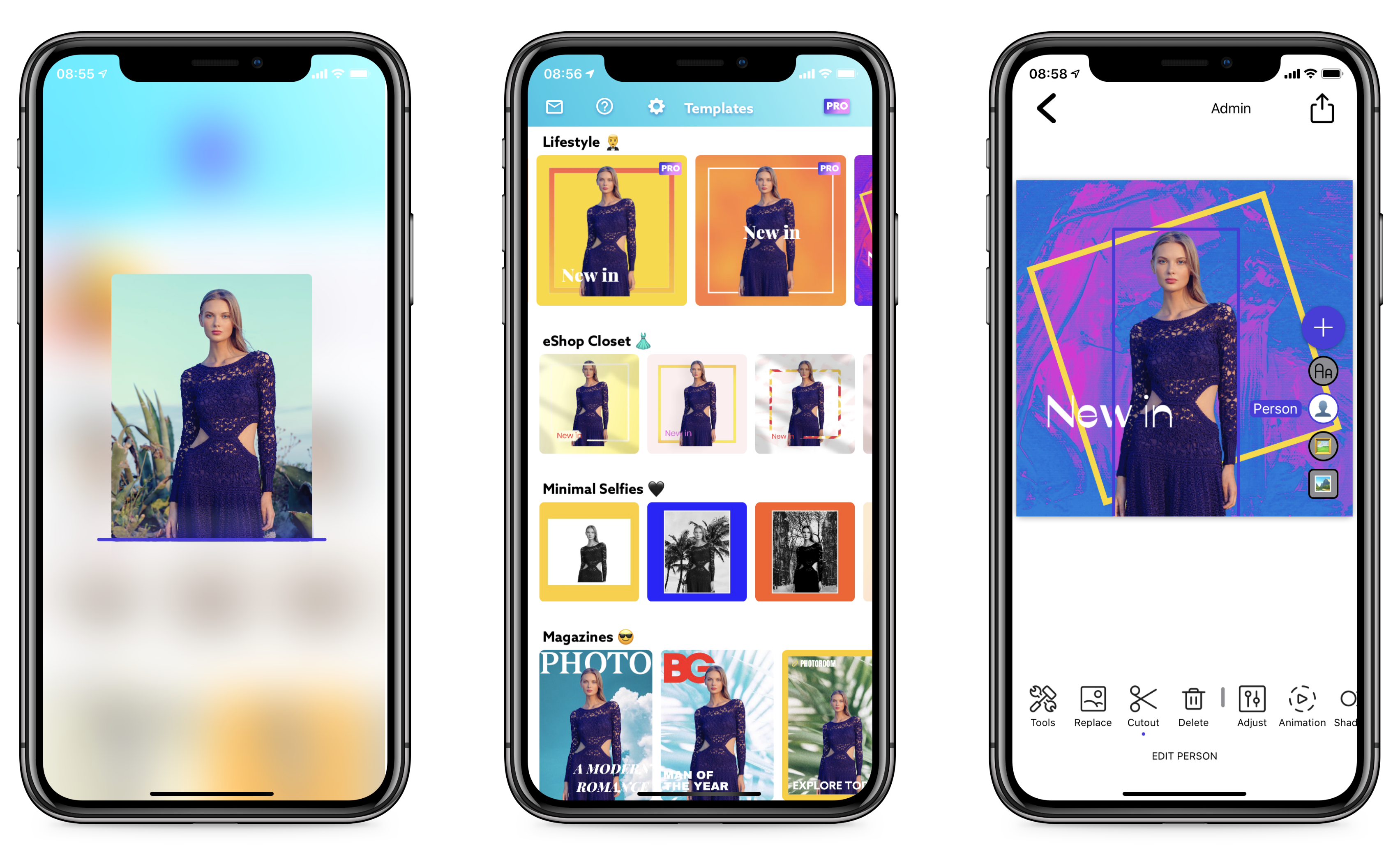 While the app relies heavily on templates, you can tweak your images by adding objects, moving them around, adding some shadow and editing elements individually. Image composition is 100% up to the user.