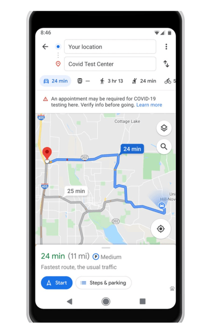 These alerts will be based on data Google receives from authoritative agencies, including local, state and federal governments or from the center’s websites. Here, the idea is to make sure that people heading to a center are aware of the guidelines so they’re not turned away upon arrival. For instance, if the center won’t see you without an appointment, that would be noted.