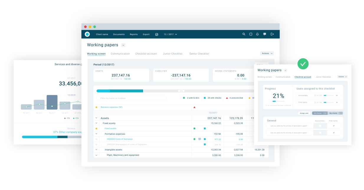 Once your data is in the system, you need to process it. Silverfin lets you configure automated workflows and templates so that anybody in the accounting firm can enrich data and check for compliance issues. Like Salesforce and other software-as-a-service products, multiple people can communicate on the service and look at all past edits and changes.