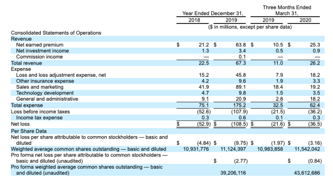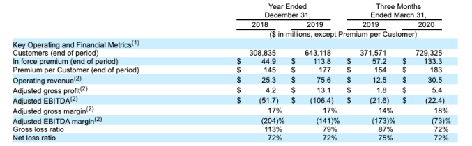 We’ll talk margins a little later, as that bit is annoying. What matters is that Lemonade’s cost structure is suffocating when compared to its ability to pay for it. Net losses rose from $52.9 million in 2018 to $108.5 million in 2019. More recently, a Q1 2019 net loss of $21.6 million was smashed in the first quarter of 2020 when the firm lost $36.5 million.