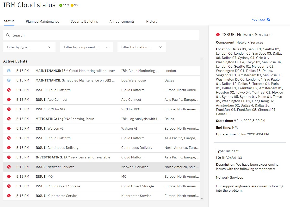 It looks like the problems started around 2:30pm PT and spread from there. Best we can tell, this is a worldwide problem and involves a networking issue, but IBM’s own status page isn’t actually loading anymore and returns an internal server error, so we don’t quite know the extent of the outage or what triggered it. IBM Cloud’s Twitter account has also remained silent, though we found a status page for IBM Aspera hosted on a third-party server, which seems to confirm that this is likely a worldwide networking issue.