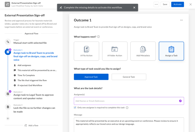 Box Relay is the company’s workflow tool, and while it has had the ability to create workflows, it required a certain level of knowledge and way of thinking to make that happen. Levie says that they wanted to make it as simple as possible for customers to build workflows to digitize manual processes.
