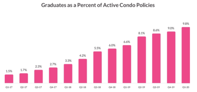 Further demonstration of this progression is found in a phenomenon we call “graduation,” which is when a customer upgrades their policy from a Lemonade renters policy to a Lemonade condo or homeowner policy. As of March 31, 2020, we had 12,445 customers of condo insurance policies, 10% of whom had graduated with us from a renters policy, a percentage that has grown steadily over the life of the company.
