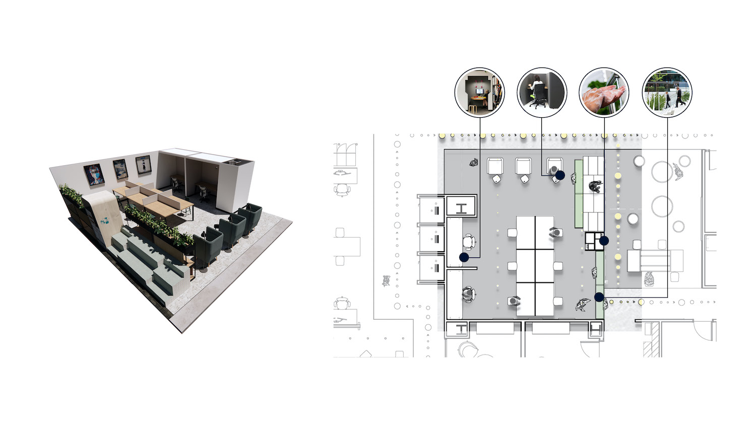 Ideas will lead the way into a post-COVID-19 economy, and the new work environment should be a marketplace where the very best thinking emerges. Ideas and abstractions are less tangible in value than goods or services, but they are what drive true business transformation. The workplace must be the marketplace for this new currency. Spaces that can deliver on this promise include: