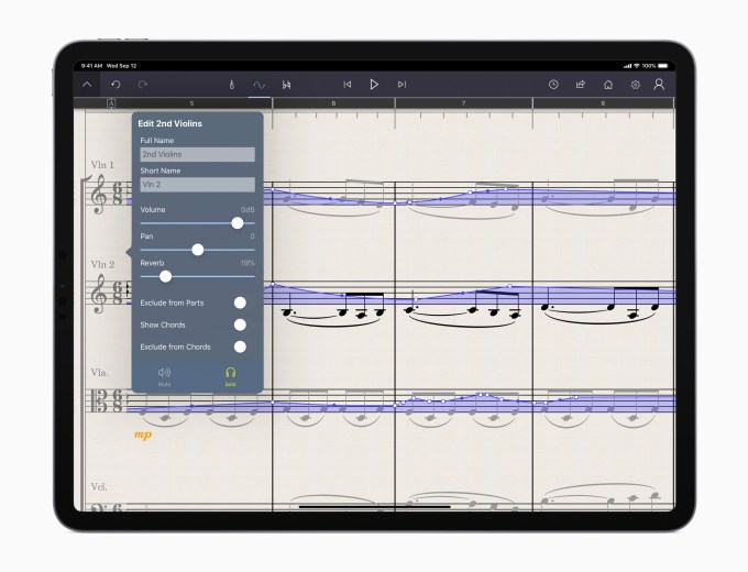 StaffPad, from StaffPad Ltd., turns handwritten musical notations into digital sheet music using Apple Pencil, drag and drop and Core ML.