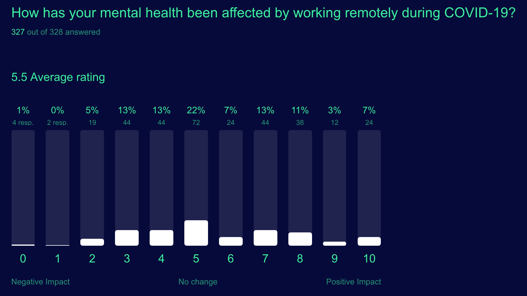 Almost 80% said there had been no significant change to their mental health as a result of working remotely during COVID-19, with a slim number experiencing either a negative impact or positive.
