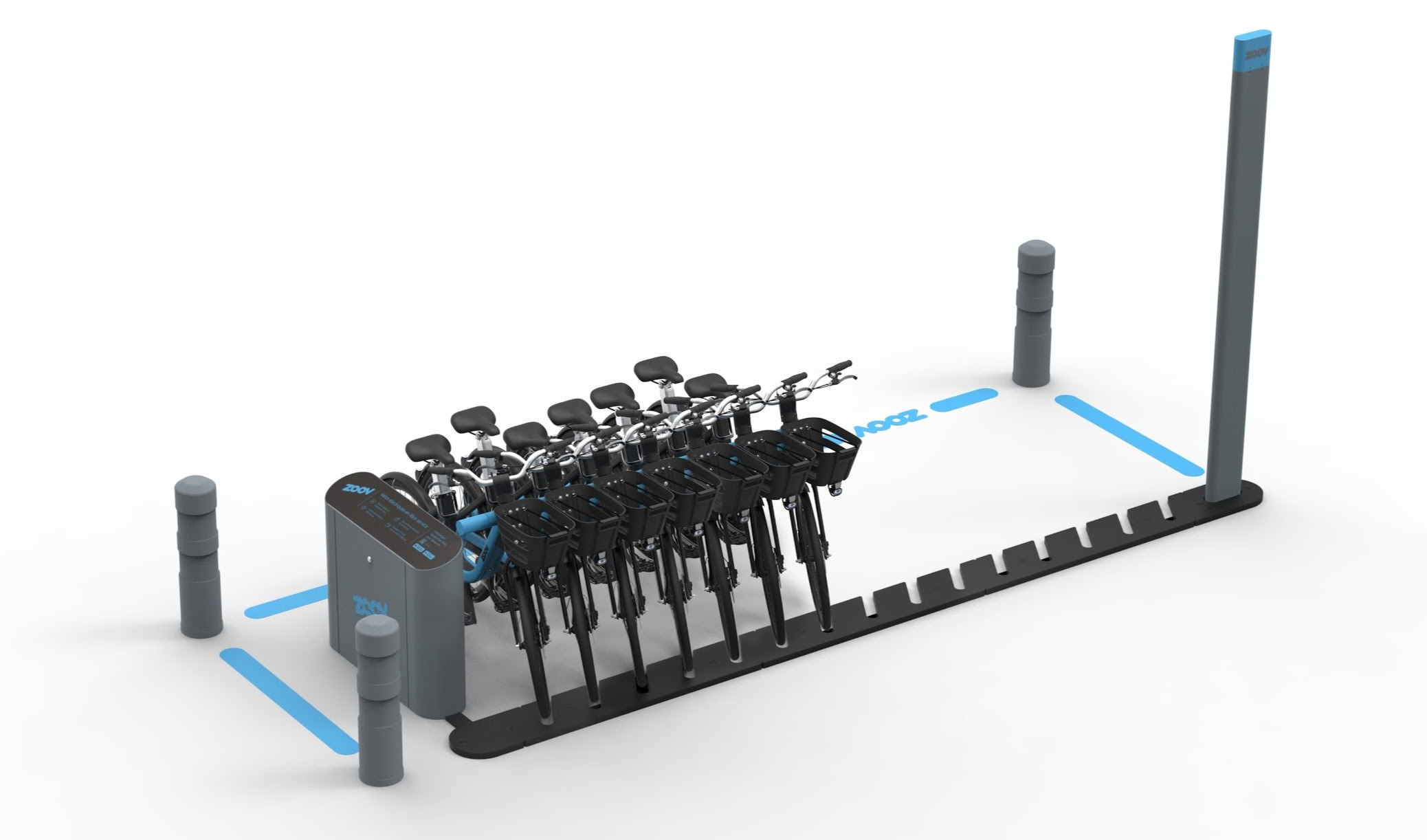 Zoov, a French electric bike-sharing platform, unveiled this week a new charging station that it says improves upon traditional docking systems. The station is designed to fit four bikes within one meter compared to other systems that can only fit one bike in the same amount of space. It can also charge bikes with or without a connection to the grid. The stations that are not tied to the grid use batteries that can be swapped out and can and be set up quickly, the company says.