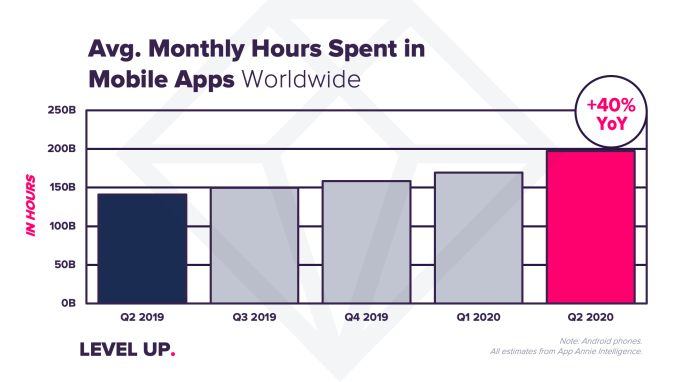As the world continued to cope with the impact of the coronavirus outbreak, the second quarter of 2020 became the largest yet for mobile app downloads, usage and consumer spending. According to new data from app store intelligence firm App Annie, mobile app usage grew 40% year-over-year in the second quarter of 2020, even hitting an all-time high of over 200 billion hours during April. Consumer spending in apps, meanwhile, hit a record high of $27 billion in the second quarter. And app downloads reached a high of nearly 35 billion.