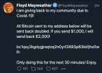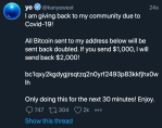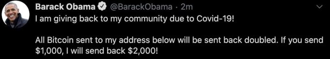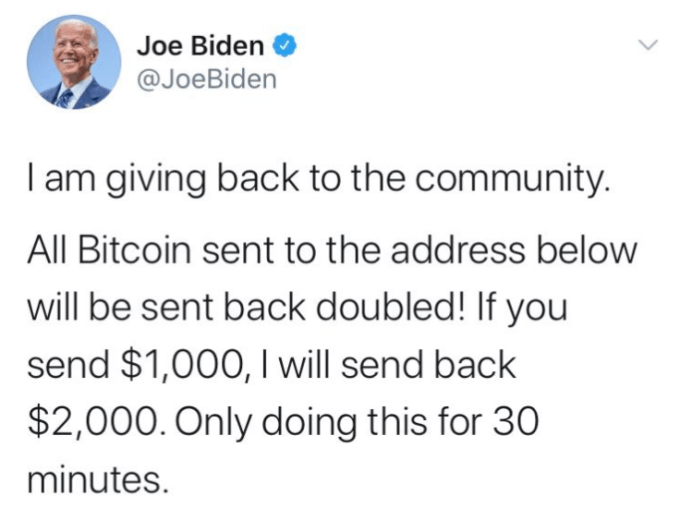 Many high profile accounts were quickly hijacked in rapid succession Wednesday afternoon, including @elonmusk, the eccentric Twitter-obsessed tech figure with a notoriously engaged fanbase. A scam tweet posted to the Tesla and SpaceX founder’s account simply directed users to send bitcoin to a certain address under the guise that he will “double any payment” — a known cryptocurrency scam technique. Musk’s account appeared to remain compromised for some time after the initial message, with follow-up posts claiming followers were sending money to the suspicious address.