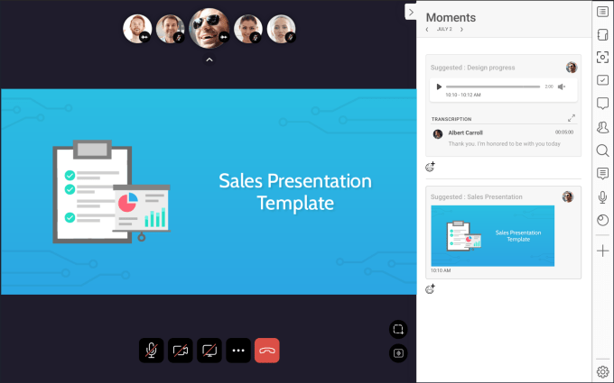 They call these meeting elements moments, and they involve capturing three key aspects of the meeting: the agenda and collaborative notes participants take during the meeting, screen captures the user takes using a built-in tool and, finally, audio, which captures a recording of the meeting. Users can search across these elements to find the parts of the meeting that are most relevant to them.