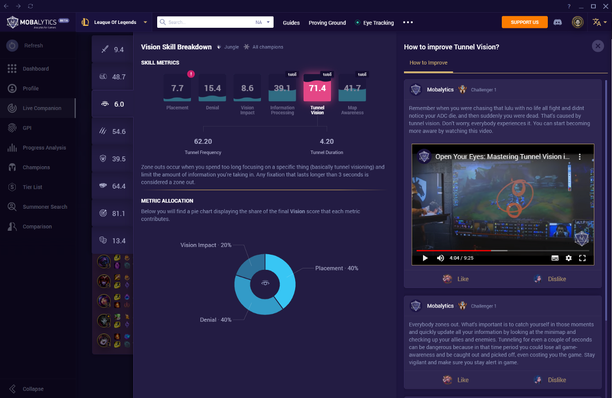 Talking to professional gamers and coaches during the study helped them form the main categories that Mobalytics now tracks with the aid of a Tobii device, like information processing, map awareness and tunnel vision.