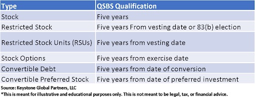 You can reference the table below to determine the QSBS qualification holding period for different types of equity. This is one of the most valuable and significant tax incentives for founders and early employees, but not everyone will qualify.