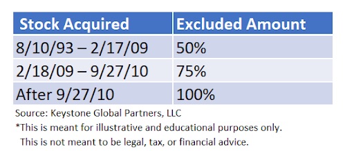 - Stock was issued after August 10, 1993, and ideally, after September 27, 2010, for a full 100% exclusion.