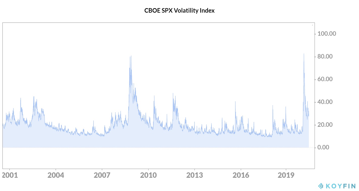 Each strategy allows the owner to continue holding the stock while providing some downside protection against a stock’s decline. However, these strategies are not tax-efficient and are complicated, so working with an expert is essential. Both puts and certain types of collars would have been extremely expensive to implement during the recent market crisis because market volatility is a factor in options prices. See the below chart of the VIX (volatility index) during peak crisis. However, in some instances, these strategies can make sense.