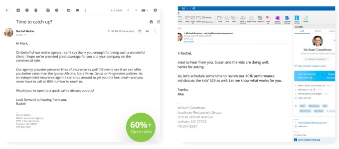 Levitate’s software plays in the same general ballpark as buzzy startup Superhuman, which also provides a set of advanced email tools for inbox triage and managing important relationships. But Superhuman does so by offering its own (pricey) email app, which includes a wider range of features for inbox triage and email efficiency, beyond those that typically fall under a CRM or marketing automation umbrella, like customer insights, email tracking or follow-up reminders, for example.