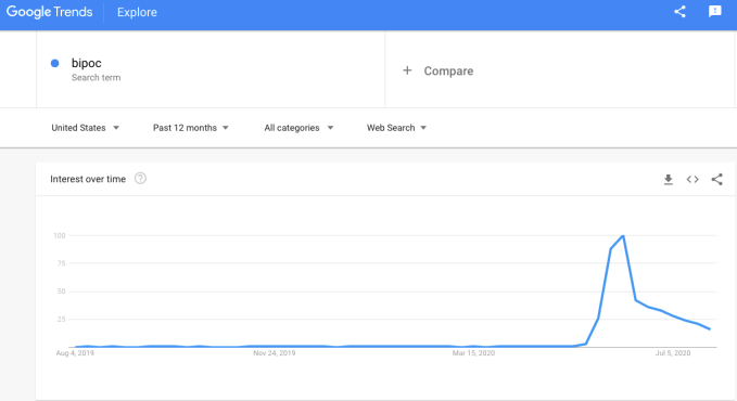 Searches for BIPOC hit its peak around June 7, according to Google Trends, which perhaps speaks to the increased usage of the term as well as lack of clarity around what it means.