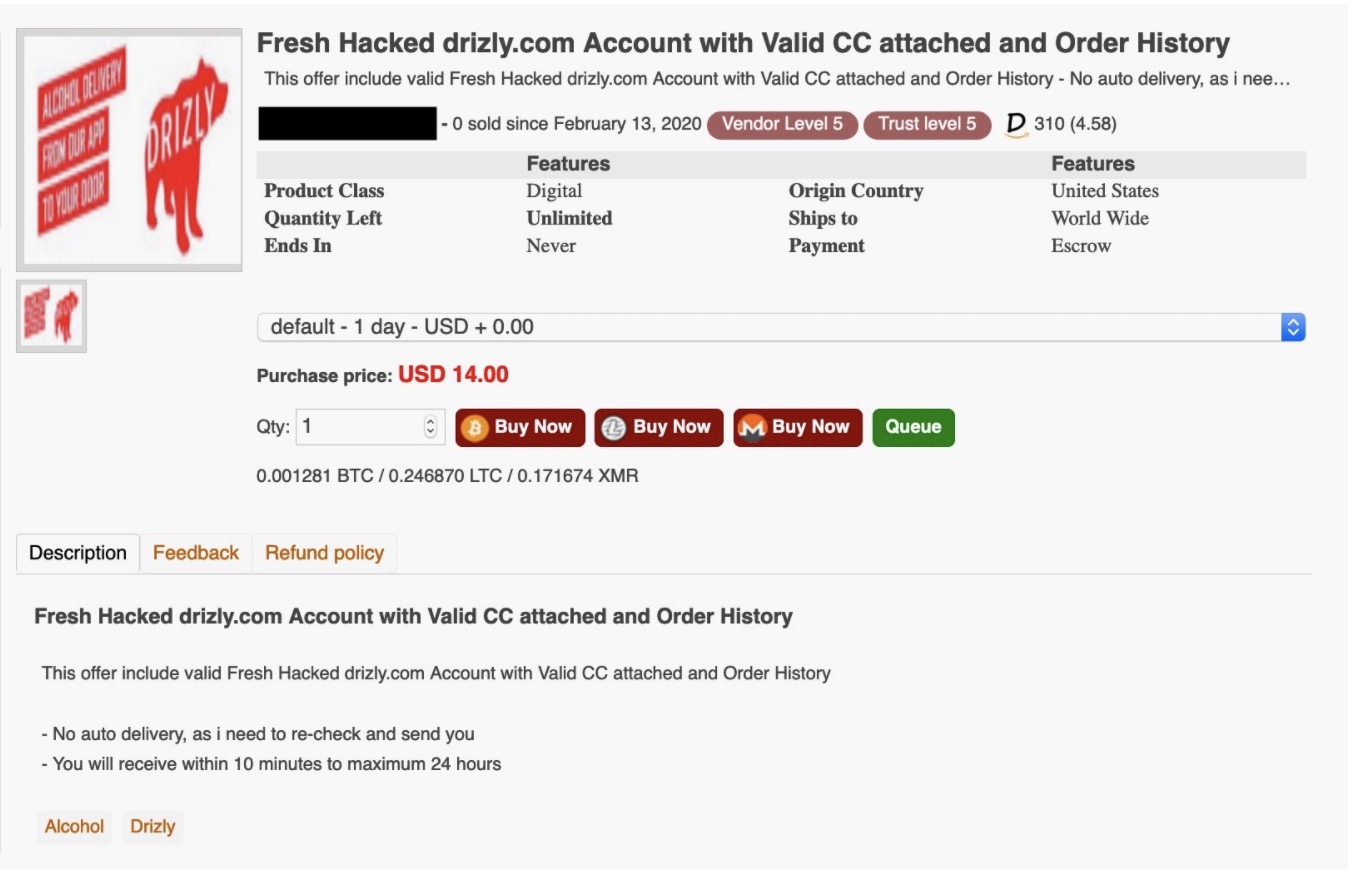 As many as 2.5 million Drizly accounts are believed to have been stolen. Here’s something to take note of, Drizy told TechCrunch that no financial information was compromised. However, a listing on a dark web marketplace from a well-known seller of stolen data claims otherwise. TechCrunch, of course, didn’t link to it. But Whittaker did take and share a screenshot.